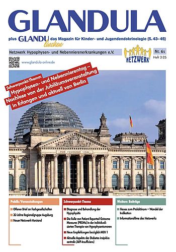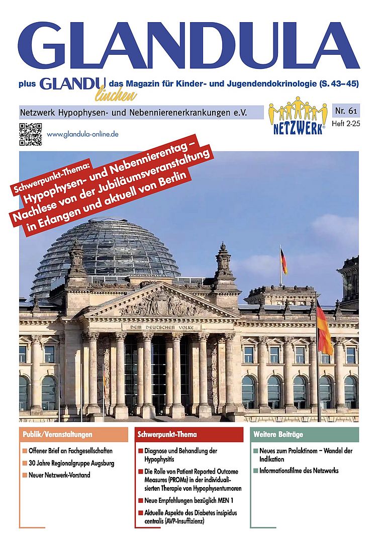 Der Schwerpunkt besteht aus Berichten vom diesjährigen Überregionalen Hypophysen- und Nebennierentag in Berlin sowie einer Nachlese der Jubiläumsveranstaltung in Erlangen. Es erwarten Sie eine Vielzahl interessanter Fachberichte, unter anderem über Hypophysitis, neue Empfehlungen zu MEN (Multiple Endokrine Neoplasie), aktuelle Aspekte des Diabetes insipidus und Patient Reported Outcome Measures (PROMs) in der Therapie von Hypophysentumoren.