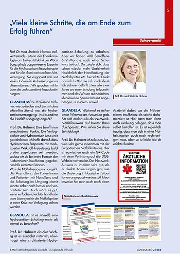 Als Leseprobe aus der letzten Ausgabe der GLANDULA, der Nr. 60, haben wir ein sehr interessantes Interview mit Prof. Dr. med. Stefanie Hahner zur Hydrocortison-Notversorgung ausgewählt.